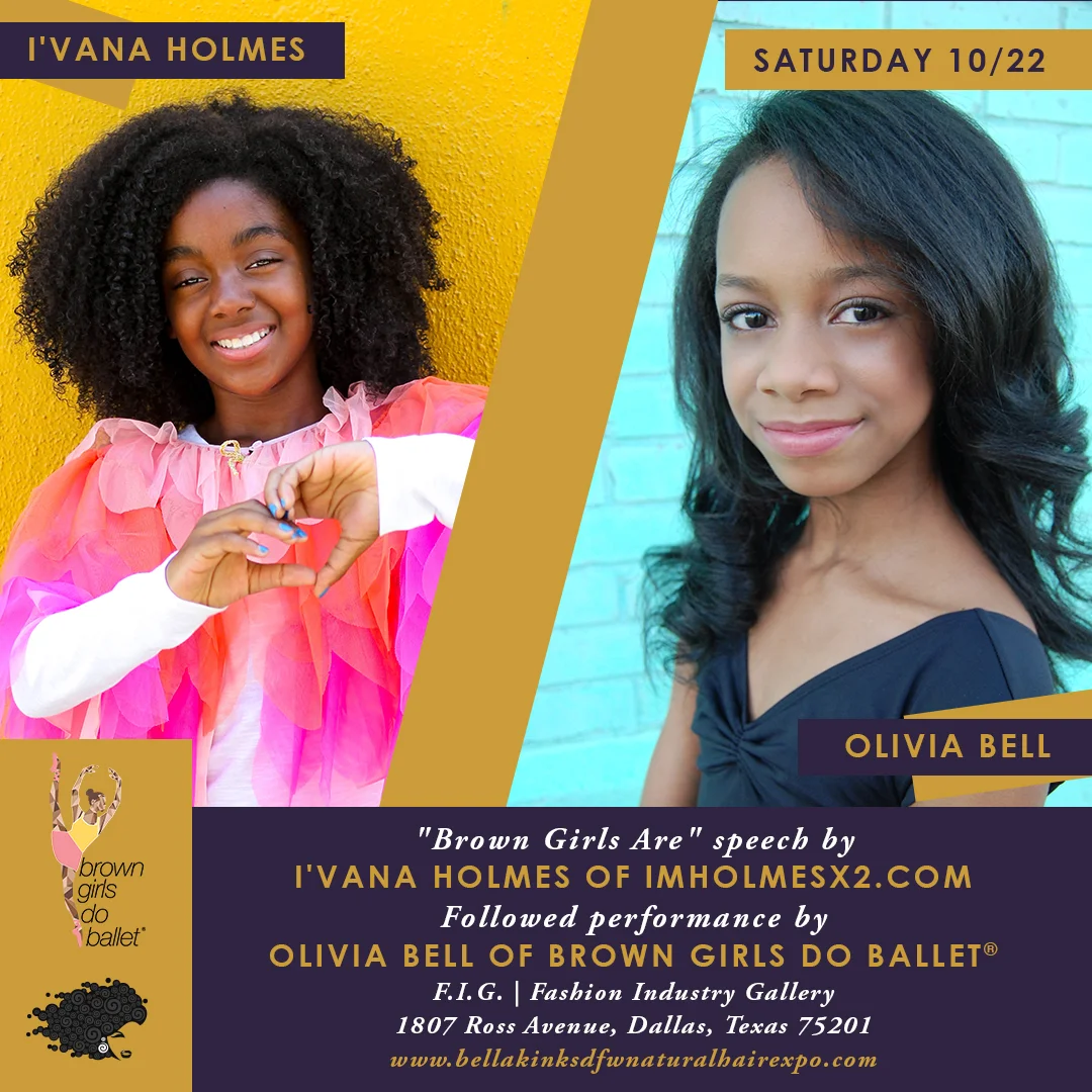 On Saturday, October 22nd, we will be at the Bella Kinks DFW Natural Hair Expo celebrating the beauty of hair and womanhood under the theme of Royalty. We are so excited to watch our own Olivia Bell perform after tween blogger, I'vana Homes' speech Brown Girls Are... You can purchase tickets for the event by visiting http://www.bellakinksdfwnaturalhairexpo.com